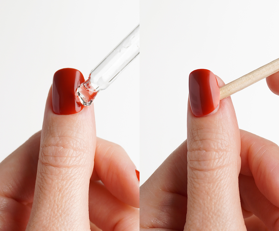 Instead of the rosewood stick, you can also use our Duo Nail Tool. The metal side can be used to gently loosen the press-on edges.