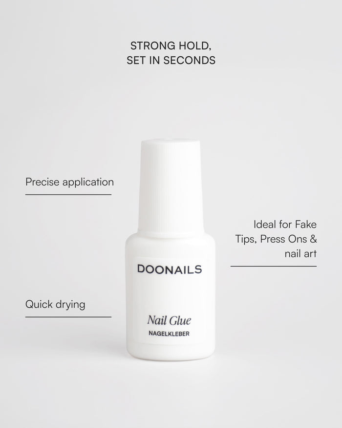 Strong nail glue with quick-drying formula.