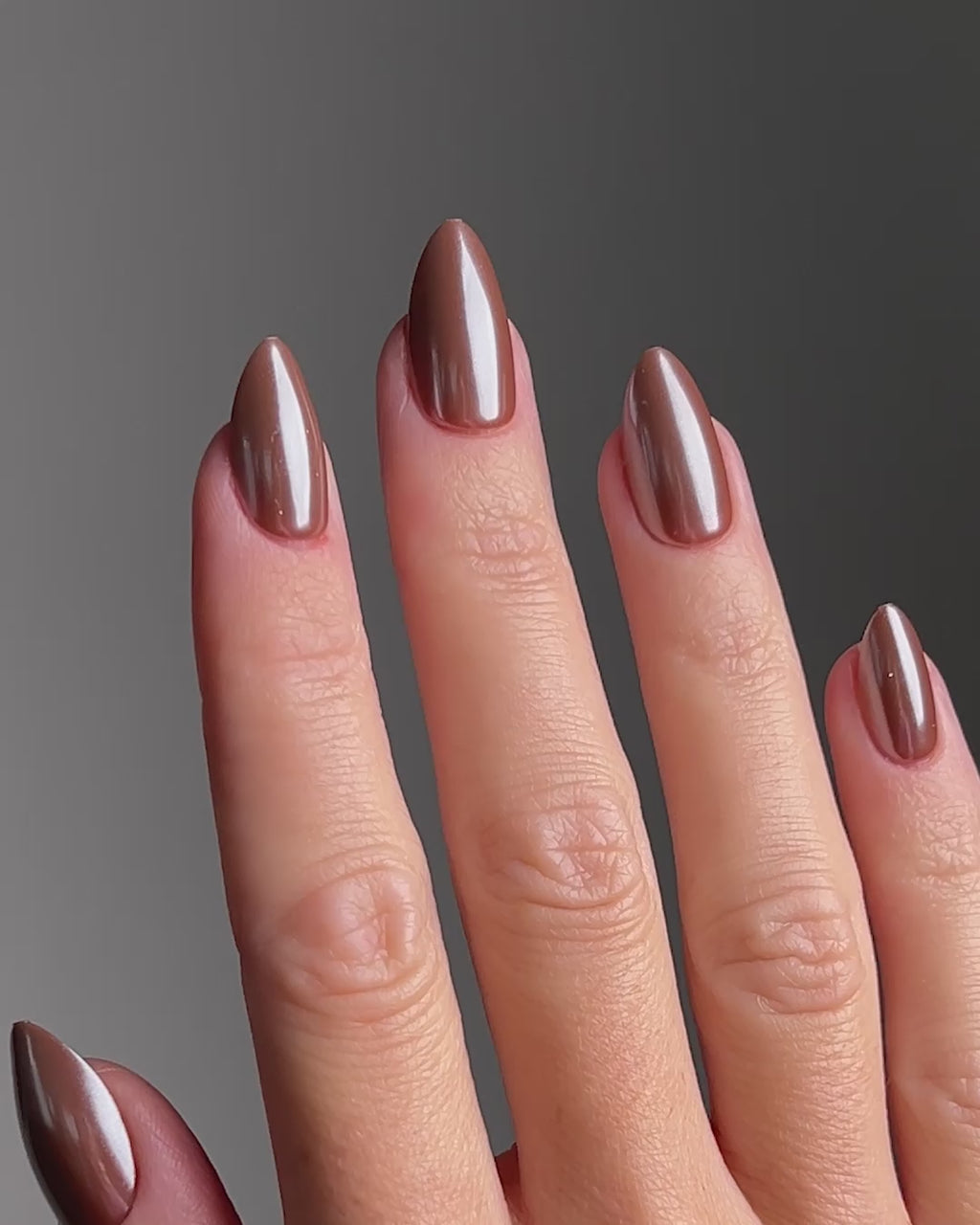 This design perfectly captures the essence of the Glazed Nails trend à la Hailey Bieber, wrapping your fingertips in a shimmering chrome effect that glows like liquid chocolate. Easy to apply, these Press Ons transform your hands into a statement of simple beauty. Ideal for days when you want to gift yourself a smile and add an extra sweet touch to your nails.